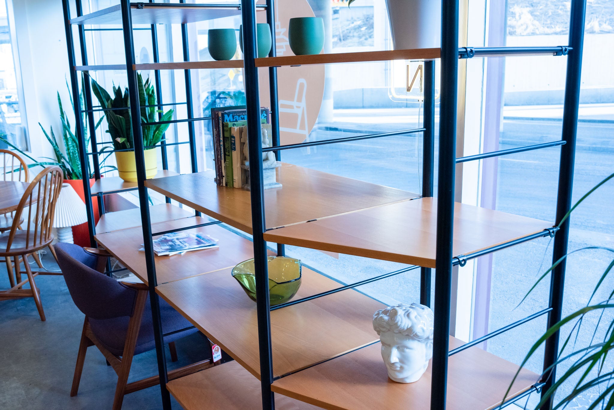 This vintage Ikea unit has four bays with 22 modular shelves(19 shown in photos). In very good vintage condition.