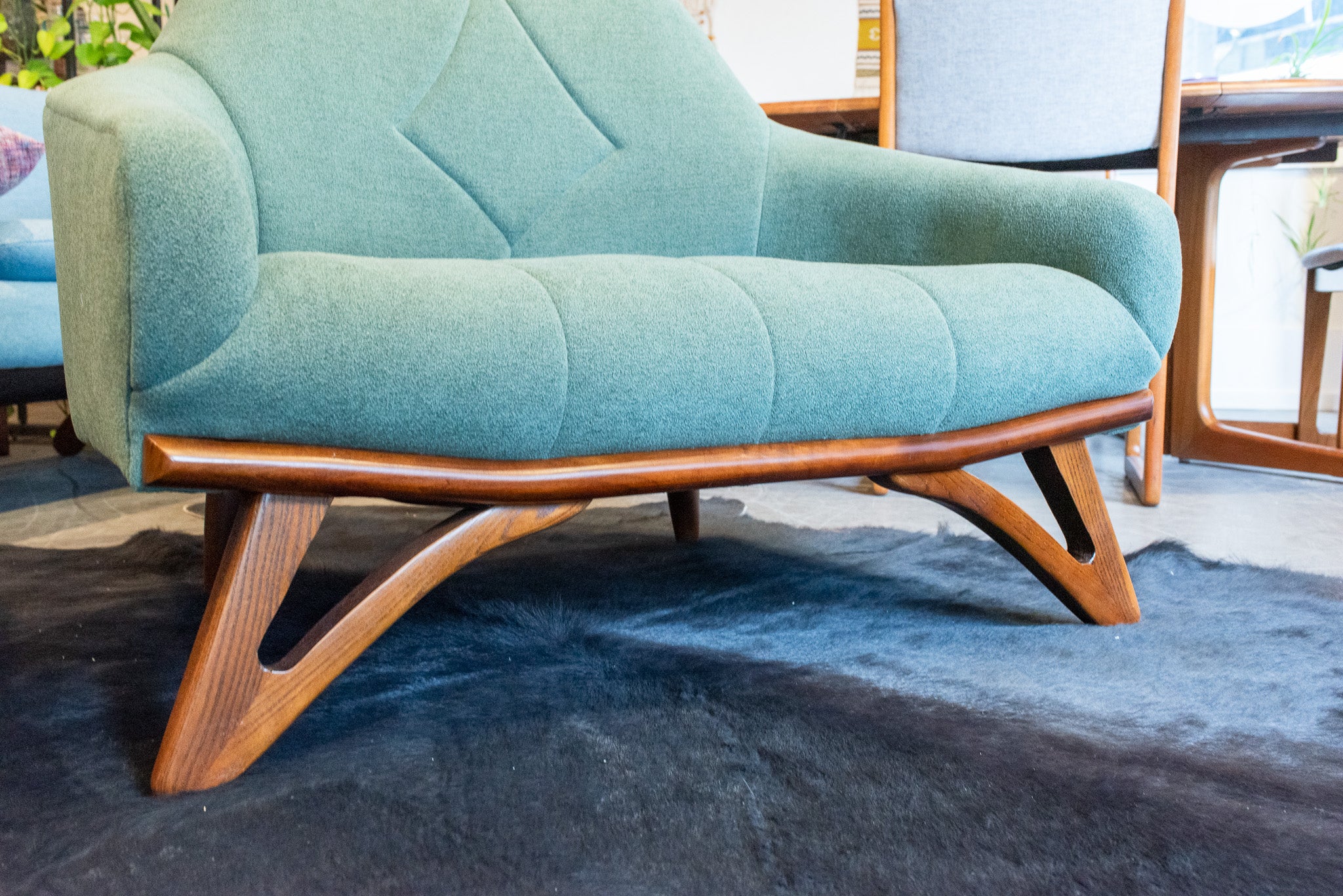 This stunning Gondola Style lounge chair has been fully restored and is ready for its new home. Impressive in style and stature, the seat boasts a 31 "width.